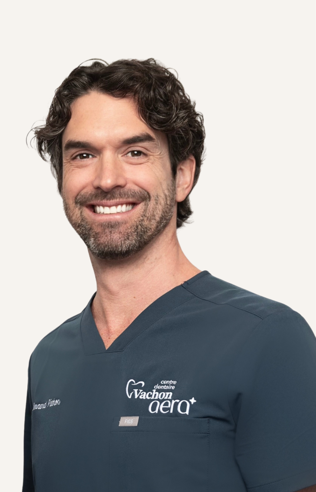 Dr Bernard Vachon est diplômé de l’Université Laval en microbiologie en 2001 et de médecine dentaire en 2005. Il a commencé sa carrière à Victoriaville pour ensuite déménager sa pratique à Québec en 2006. Depuis ce temps, il a su offrir des soins complets en dentisterie esthétique, en endodontie, ainsi qu’en prothèses fixes. Ayant une préférence pour le domaine chirurgical, Dr Vachon pratique l’extraction de dents de sagesse. Dr Vachon se distingue par une quête constante d’excellence. Fort de plus de 20 ans d’expérience, il a complété des formations en implantologie et en greffes osseuses, en plus d’une formation en orthodontie. Soucieux de toujours perfectionner sa pratique, il poursuit activement son développement professionnel avec une formation en injections de neuromodulateurs en 2025, suivie d’une formation en injections d’agents de comblement en 2026. Son souci du détail, son calme et son côté humain font de lui un dentiste chevronné.